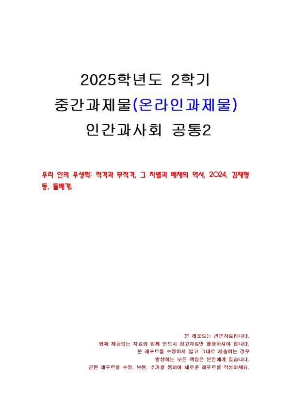 | 2025³â 2Çбâ Àΰ£°ú»çȸ Áß°£½ÃÇè°úÁ¦¹° °øÅë2(¿ì¸® ¾ÈÀÇ ¿ì»ýÇÐ - µ¶Èݨ) |
