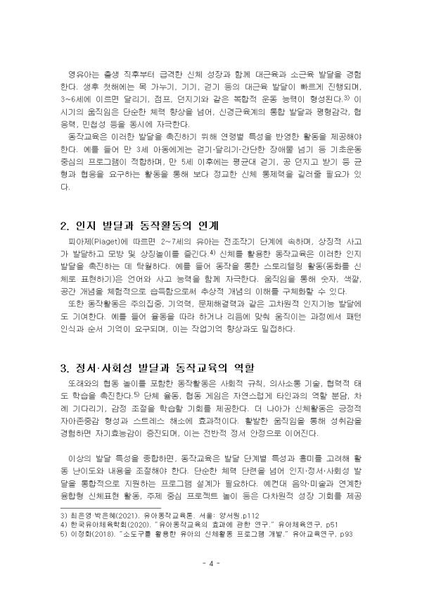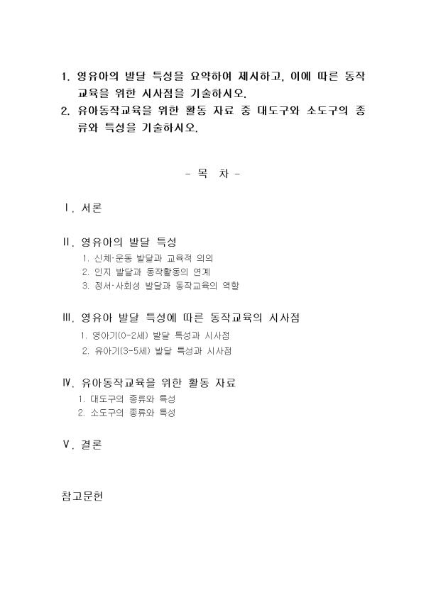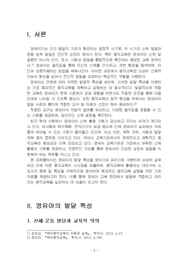 2. À¯¾Æµ¿ÀÛ±³À°À» À§ÇÑ È°µ¿ ÀÚ·á Áß ´ëµµ±¸¿Í ¼Òµµ±¸ÀÇ Á¾·ù¿Í Ư¼ºÀ» ±â¼úÇϽÿÀ. - ¸ñ Â÷ - ¥°. ¼·Ð ¥±. ¿µÀ¯¾ÆÀÇ ¹ß´Þ Ư¼º 1. ½Åü¡¤¿îµ¿ ¹ß´Þ°ú ±³À°Àû ÀÇÀÇ 2. ÀÎÁö ¹ß´Þ°ú µ¿ÀÛȰµ¿ÀÇ ¿¬°è 3. Á¤¼¡¤»çȸ¼º ¹ß´Þ°ú µ¿ÀÛ±³À°ÀÇ ¿ªÇÒ ¥². ¿µÀ¯¾Æ ¹ß´Þ Ư¼º¿¡ µû¸¥ µ¿ÀÛ±³À°ÀÇ ½Ã»çÁ¡ 1. ¿µ¾Æ±â(0-2¼¼) ¹ß´Þ Ư¼º°ú ½Ã»çÁ¡ 2. À¯¾Æ±â(3-5¼¼) ¹ß´Þ Ư¼º°ú ½Ã»çÁ¡ ¥³. À¯¾Æµ¿ÀÛ±³À°À» À§ÇÑ È°µ¿ ÀÚ·á 1. ´ëµµ±¸ÀÇ Á¾·ù¿Í Ư¼º 2. ¼Òµµ±¸ÀÇ Á¾·ù¿Í Ư¼º ¥´. °á·Ð Âü°í¹®Çå ** ÇÔ²² Á¦°øµÇ´Â Âü°íÀÚ·áÆÄÀÏ ** 1. ¼·Ð Âü°í.hwp 2. ¼·Ð Âü°í2.hwp 3. °á·Ð Âü°í.hwp 4. °á·Ð Âü°í2.hwp 5. ´ëµµ±¸ÀÇ Á¾·ù¿Í Ư¼º.hwp 6. ´ëµµ±¸ÀÇ Á¾·ù¿Í Ư¼º2.hwp 7. ¼Òµµ±¸ÀÇ Á¾·ù¿Í Ư¼º.hwp 8. ¼Òµµ±¸ÀÇ Á¾·ù¿Í Ư¼º2.hwp 9. ½Åü¿îµ¿¹ß´Þ°ú ±³À°ÀûÀÇÀÇ.hwp 10.½Åü¿îµ¿¹ß´Þ°ú ±³À°ÀûÀÇÀÇ2.hwp 11. ¿µ¾Æ±â¹ß´Þ Ư¼º°ú µ¿ÀÛ±³À°ÀÇ ½Ã»çÁ¡.hwp 12. ¿µ¾Æ±â¹ß´Þ Ư¼º°ú µ¿ÀÛ±³À°ÀÇ ½Ã»çÁ¡2.hwp 13. ¿µ¾Æ±â¹ß´Þ Ư¼º°ú ½Ã»çÁ¡.hwp 14. À¯¾Æ±â¹ß´Þ Ư¼º°ú µ¿ÀÛ±³À°ÀÇ ½Ã»çÁ¡.hwp 15. À¯¾Æ±â¹ß´Þ Ư¼º°ú µ¿ÀÛ±³À°ÀÇ ½Ã»çÁ¡2.hwp 16. À¯¾Æ±â¹ß´Þ Ư¼º°ú ½Ã»çÁ¡.hwp 17. ÀÎÁö¹ß´Þ°ú µ¿ÀÛȰµ¿ÀÇ ¿¬°è.hwp 18. ÀÎÁö¹ß´Þ°ú µ¿ÀÛȰµ¿ÀÇ ¿¬°è2.hwp 19. Á¤¼»çȸ¼º¹ß´Þ°ú µ¿ÀÛ±³À°ÀÇ ¿ªÇÒ.hwp 20. Á¤¼»çȸ¼º¹ß´Þ°ú µ¿ÀÛ±³À°ÀÇ ¿ªÇÒ2.hwp 21. Ȱµ¿ÀÚ·á ¼±Åà ¹× Ȱ¿ë ½Ã °í·Á»çÇ×.hwp ¢ºÀÚ·á³»¿ë ¹Ì¸®º¸±â