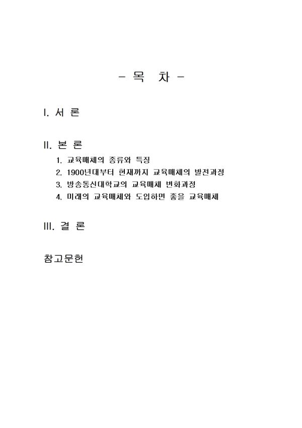 2. ±³Àç¿Í °ÀÇ ³»¿ëÀ» Âü°íÇÏ¿© 1900³â´ëºÎÅÍ ÇöÀç±îÁö ±³À°¸ÅüÀÇ ¹ßÀü°úÁ¤À» ¼³¸íÇϽÿÀ. 3. ¹æ¼ÛÅë½Å´ëÇб³¿¡¼ »ç¿ëÇϰí ÀÖ´Â ±³À°¸Åü°¡ ¾î¶² º¯È°úÁ¤À» °ÅÃÆ´ÂÁö 1972³â ¼³¸³ ÀÌÈĺÎÅÍ ½Ã±âº°·Î Á¤¸®ÇϽÿÀ. 4. ¹Ì·¡ÀÇ ±³À°¸Åü¿¡ ´ëÇØ Á¶»çÇϰí, ¿ì¸® Çб³¿¡ µµÀÔÇϸé ÁÁÀ» ±³À°¸Åü¿¡ ´ëÇØ ±× ÀÌÀ¯¿Í ÇÔ²² ¼³¸íÇϽÿÀ. - ¸ñ Â÷ - I. ¼ ·Ð II. º» ·Ð 1. ±³À°¸ÅüÀÇ Á¾·ù¿Í Ư¡ 2. 1900³â´ëºÎÅÍ ÇöÀç±îÁö ±³À°¸ÅüÀÇ ¹ßÀü°úÁ¤ 3. ¹æ¼ÛÅë½Å´ëÇб³ÀÇ ±³À°¸Åü º¯È°úÁ¤ 4. ¹Ì·¡ÀÇ ±³À°¸Åü¿Í µµÀÔÇϸé ÁÁÀ» ±³À°¸Åü III. °á ·Ð Âü°í¹®Çå ** ÇÔ²² Á¦°øµÇ´Â Âü°íÀÚ·á ÇÑ±ÛÆÄÀÏ ** 1. 1900³â´ëºÎÅÍ ÇöÀç±îÁö ±³À°¸ÅüÀÇ ¹ßÀü°úÁ¤.hwp 2. 1900³â´ëºÎÅÍ ÇöÀç±îÁö ±³À°¸ÅüÀÇ ¹ßÀü°úÁ¤2.hwp 3. ±³À°¸ÅüÀÇ Á¾·ù¿Í Ư¡.hwp 4. ±³À°¸ÅüÀÇ Á¾·ù¿Í Ư¡2.hwp 5. ¹Ì·¡ÀÇ ±³À°¸Åü¿Í ¹æ¼Û´ë µµÀÔ ¹æ¾È.hwp 6. ¹Ì·¡ÀÇ ±³À°¸Åü¿Í ¹æ¼Û´ë µµÀÔ ¹æ¾È2.hwp 7. ¹æ¼ÛÅë½Å´ëÇб³ ±³À°¸Åü º¯È°úÁ¤(1972~ÇöÀç).hwp 8. ¹æ¼ÛÅë½Å´ëÇб³ ±³À°¸Åü º¯È°úÁ¤(1972~ÇöÀç)2.hwp ¢ºÀÚ·á³»¿ë ¹Ì¸®º¸±â