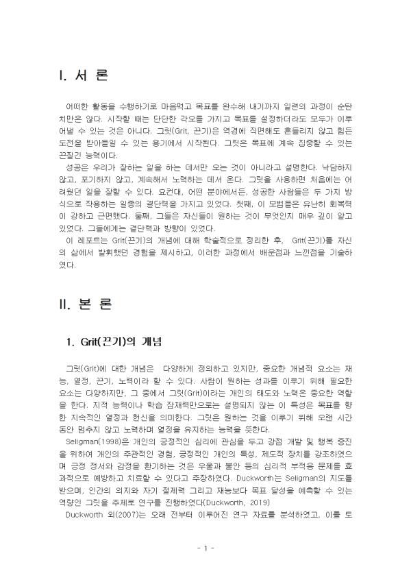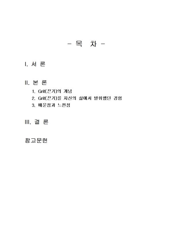 - ¸ñ Â÷ - I. ¼ ·Ð II. º» ·Ð 1. Grit(²ö±â)ÀÇ °³³ä 2. Grit(²ö±â)¸¦ ÀÚ½ÅÀÇ »î¿¡¼ ¹ßÈÖÇß´ø °æÇè 3. ¹è¿îÁ¡°ú ´À³¤Á¡ III. °á ·Ð Âü°í¹®Çå ** ÇÔ²² Á¦°øµÇ´Â Âü°íÀÚ·á ÇÑ±ÛÆÄÀÏ ** 1. Grit(²ö±â)¸¦ ÀÚ½ÅÀÇ »î¿¡¼ ¹ßÈÖÇß´ø °æÇè.hwp 2. Grit(²ö±â)¸¦ ÀÚ½ÅÀÇ »î¿¡¼ ¹ßÈÖÇß´ø °æÇè2.hwp 3. Grit(²ö±â)ÀÇ °³³ä.hwp 4. Grit(²ö±â)ÀÇ °³³ä2.hwp 5. ¹è¿îÁ¡°ú ´À³¤Á¡.hwp 6. ¹è¿îÁ¡°ú ´À³¤Á¡2.hwp 7. ¼·Ð ÀÛ¼º½Ã ÂüÁ¶.hwp 8. °á·Ð ÀÛ¼º½Ã ÂüÁ¶.hwp 9. ¼·Ð ÀÛ¼º½Ã ÂüÁ¶2.hwp 10. °á·Ð ÀÛ¼º½Ã ÂüÁ¶2.hwp ¢ºÀÚ·á³»¿ë ¹Ì¸®º¸±â