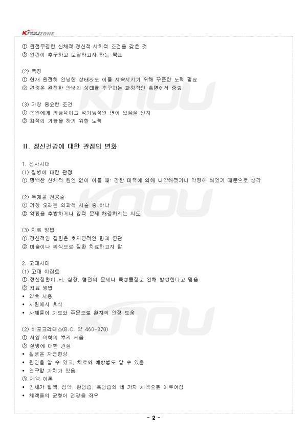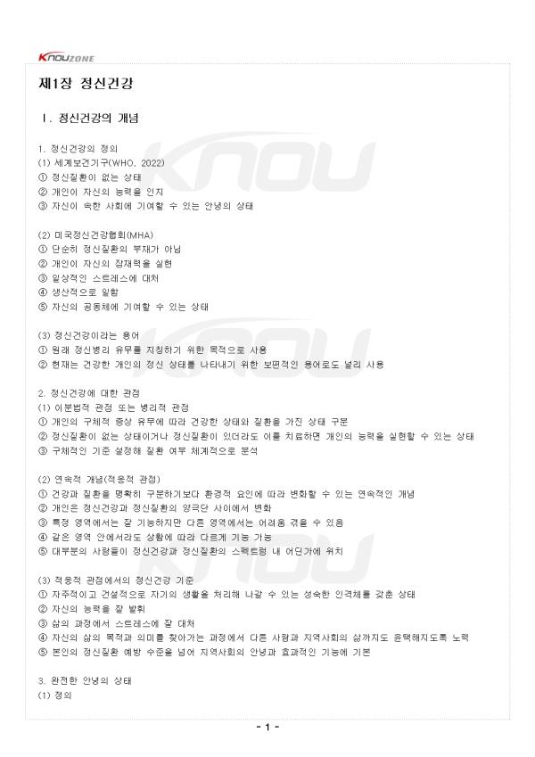 ¥°. Á¤½Å°Ç°ÀÇ °³³ä 1. Á¤½Å°Ç°ÀÇ Á¤ÀÇ (1) ¼¼°èº¸°Ç±â±¸(WHO, 2022) ¨ç Á¤½ÅÁúȯÀÌ ¾ø´Â »óÅ ¨è °³ÀÎÀÌ ÀÚ½ÅÀÇ ´É·ÂÀ» ÀÎÁö ¨é ÀÚ½ÅÀÌ ¼ÓÇÑ »çȸ¿¡ ±â¿©ÇÒ ¼ö ÀÖ´Â ¾È³çÀÇ »óÅ (2) ¹Ì±¹Á¤½Å°Ç°Çùȸ(MHA) ¨ç ´Ü¼øÈ÷ Á¤½ÅÁúȯÀÇ ºÎÀç°¡ ¾Æ´Ô ¨è °³ÀÎÀÌ ÀÚ½ÅÀÇ ÀáÀç·ÂÀ» ½ÇÇö ¨é ÀÏ»óÀûÀÎ ½ºÆ®·¹½º¿¡ ´ëó ¨ê »ý»êÀûÀ¸·Î ÀÏÇÔ ¨ë ÀÚ½ÅÀÇ °øµ¿Ã¼¿¡ ±â¿©ÇÒ ¼ö ÀÖ´Â »óÅ (3) Á¤½Å°Ç°À̶ó´Â ¿ë¾î ¨ç ¿ø·¡ Á¤½Åº´¸® À¯¹«¸¦ ÁöĪÇϱâ À§ÇÑ ¸ñÀûÀ¸·Î »ç¿ë ¨è ÇöÀç´Â °Ç°ÇÑ °³ÀÎÀÇ Á¤½Å »óŸ¦ ³ªÅ¸³»±â À§ÇÑ º¸ÆíÀûÀÎ ¿ë¾î·Îµµ ³Î¸® »ç¿ë 2. Á¤½Å°Ç°¿¡ ´ëÇÑ °üÁ¡ (1) À̺йýÀû °üÁ¡ ¶Ç´Â º´¸®Àû °üÁ¡ ¨ç °³ÀÎÀÇ ±¸Ã¼Àû Áõ»ó À¯¹«¿¡ µû¶ó °Ç°ÇÑ »óÅÂ¿Í ÁúȯÀ» °¡Áø »óÅ ±¸ºÐ ¨è Á¤½ÅÁúȯÀÌ ¾ø´Â »óÅÂÀ̰ųª Á¤½ÅÁúȯÀÌ ÀÖ´õ¶óµµ À̸¦ Ä¡·áÇÏ¸é °³ÀÎÀÇ ´É·ÂÀ» ½ÇÇöÇÒ ¼ö ÀÖ´Â »óÅ ¨é ±¸Ã¼ÀûÀÎ ±âÁØ ¼³Á¤ÇØ Áúȯ ¿©ºÎ ü°èÀûÀ¸·Î ºÐ¼® (2) ¿¬¼ÓÀû °³³ä(ÀûÀÀÀû °üÁ¡) ¨ç °Ç°°ú ÁúȯÀ» ¸íÈ®È÷ ±¸ºÐÇϱ⺸´Ù ȯ°æÀû ¿äÀο¡ µû¶ó º¯ÈÇÒ ¼ö ÀÖ´Â ¿¬¼ÓÀûÀÎ °³³ä ¨è °³ÀÎÀº Á¤½Å°Ç°°ú Á¤½ÅÁúȯÀÇ ¾ç±Ø´Ü »çÀÌ¿¡¼ º¯È ¨é ƯÁ¤ ¿µ¿ª¿¡¼´Â Àß ±â´ÉÇÏÁö¸¸ ´Ù¸¥ ¿µ¿ª¿¡¼´Â ¾î·Á¿ò °ÞÀ» ¼ö ÀÖÀ½ ¨ê °°Àº ¿µ¿ª ¾È¿¡¼¶óµµ »óȲ¿¡ µû¶ó ´Ù¸£°Ô ±â´É °¡´É ¨ë ´ëºÎºÐÀÇ »ç¶÷µéÀÌ Á¤½Å°Ç°°ú Á¤½ÅÁúȯÀÇ ½ºÆåÆ®·³ ³» ¾îµò°¡¿¡ À§Ä¡ (3) ÀûÀÀÀû °üÁ¡¿¡¼ÀÇ Á¤½Å°Ç° ±âÁØ ¨ç ÀÚÁÖÀûÀÌ°í °Ç¼³ÀûÀ¸·Î ÀÚ±âÀÇ »ýȰÀ» ó¸®ÇØ ³ª°¥ ¼ö ÀÖ´Â ¼º¼÷ÇÑ ÀΰÝü¸¦ °®Ãá »óÅ ¨è ÀÚ½ÅÀÇ ´É·ÂÀ» Àß ¹ßÈÖ ¨é »îÀÇ °úÁ¤¿¡¼ ½ºÆ®·¹½º¿¡ Àß ´ëó ¨ê ÀÚ½ÅÀÇ »îÀÇ ¸ñÀû°ú Àǹ̸¦ ã¾Æ°¡´Â °úÁ¤¿¡¼ ´Ù¸¥ »ç¶÷°ú Áö¿ª»çȸÀÇ »î±îÁöµµ À±ÅÃÇØÁöµµ·Ï ³ë·Â ¨ë º»ÀÎÀÇ Á¤½ÅÁúȯ ¿¹¹æ ¼öÁØÀ» ³Ñ¾î Áö¿ª»çȸÀÇ ¾È³ç°ú È¿°úÀûÀÎ ±â´É¿¡ ±âº» 3. ¿ÏÀüÇÑ ¾È³çÀÇ »óÅ (1) Á¤ÀÇ ¨ç ¿ÏÀü¹«°áÇÑ ½ÅüÀû¡¤Á¤½ÅÀû¡¤»çȸÀû Á¶°ÇÀ» °®Ãá °Í ¨è Àΰ£ÀÌ Ãß±¸ÇÏ°í µµ´ÞÇϰíÀÚ ÇÏ´Â ¸ñÇ¥ (2) Ư¡ ¨ç ÇöÀç ¿ÏÀüÈ÷ ¾È³çÇÑ »óÅÂ¶óµµ À̸¦ Áö¼Ó½Ã۱â À§ÇØ ²ÙÁØÇÑ ³ë·Â ÇÊ¿ä ¨è °Ç°Àº ¿ÏÀüÇÑ ¾È³çÀÇ »óŸ¦ Ãß±¸ÇÏ´Â °úÁ¤ÀûÀÎ Ãø¸é¿¡¼ Áß¿ä (3) °¡Àå Áß¿äÇÑ Á¶°Ç ¨ç º»Àο¡°Ô ±â´ÉÀûÀÌ°í ¿ª±â´ÉÀûÀÎ ¸éÀÌ ÀÖÀ½À» ÀÎÁö ¨è ÃÖÀûÀÇ ±â´ÉÀ» Çϱâ À§ÇÑ ³ë·Â ¥±. Á¤½Å°Ç°¿¡ ´ëÇÑ °üÁ¡ÀÇ º¯È 1. ¼±»ç½Ã´ë (1) Áúº´¿¡ ´ëÇÑ °üÁ¡ ¨ç ¸í¹éÇÑ ½ÅüÀû ¿øÀÎ ¾øÀÌ ¾ÆÇà ¶§: °ÇÑ ¸¶·Â¿¡ ÀÇÇØ ³ª¾àÇØÁ³°Å³ª ¾Ç·É¿¡ ¾º¾ú±â ¶§¹®À¸·Î »ý°¢ (2) µÎ°³°ñ õ°ø¼ú ¨ç °¡Àå ¿À·¡µÈ ¿Ü°úÀû ½Ã¼ú Áß Çϳª ¨è ¾Ç·ÉÀ» Ãß¹æÇϰųª ¿µÀû ¹®Á¦ ÇØ°áÇÏ·Á´Â Àǵµ (3) Ä¡·á ¹æ¹ý ¨ç Á¤½ÅÀûÀÎ ÁúȯÀº ÃÊÀÚ¿¬ÀûÀÎ Èû°ú ¿¬°ü ¨è ¸¶¼úÀ̳ª ÀǽÄÀ¸·Î Áúȯ Ä¡·áÇϰíÀÚ ÇÔ 2. °í´ë½Ã´ë (1) °í´ë ÀÌÁýÆ® ¨ç Á¤½ÅÁúȯÀÌ ³ú, ½ÉÀå, Ç÷°üÀÇ ¹®Á¦³ª µ¶¼º¹°Áú·Î ÀÎÇØ ¹ß»ýÇÑ´Ù°í ¹ÏÀ½ ¨è Ä¡·á ¹æ¹ý • ¾àÃÊ »ç¿ë • »ç¿ø¿¡¼ ÈÞ½Ä • »çÁ¦µéÀÌ ±âµµ¿Í ÁÖ¹®À¸·Î ȯÀÚÀÇ ¾ÈÁ¤ µµ¿ò (2) È÷Æ÷Å©¶óÅ×½º(B.C. ¾à 460-370) ¨ç ¼¾ç ÀÇÇÐÀÇ »Ñ¸® ¼¼¿ò ¨è Áúº´¿¡ ´ëÇÑ °üÁ¡ • Áúº´Àº ÀÚ¿¬Çö»ó • ¿øÀÎÀ» ¾Ë ¼ö ÀÖ°í, Ä¡·á¿Í ¿¹¹æ¹ýµµ ¾Ë ¼ö ÀÖÀ½ • ¿¬±¸ÇÒ °¡Ä¡°¡ ÀÖÀ½ - Áß·« - |