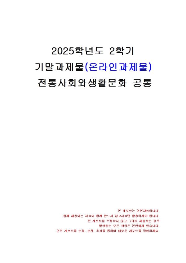 | 2025³â 2Çбâ ÀüÅë»çȸ¿Í»ýȰ¹®È ±â¸»½ÃÇè °úÁ¦¹°(ÀüÅë ½Ã´ë ¿©·¯ ÀÇ·Ê »ýȰ µî) |