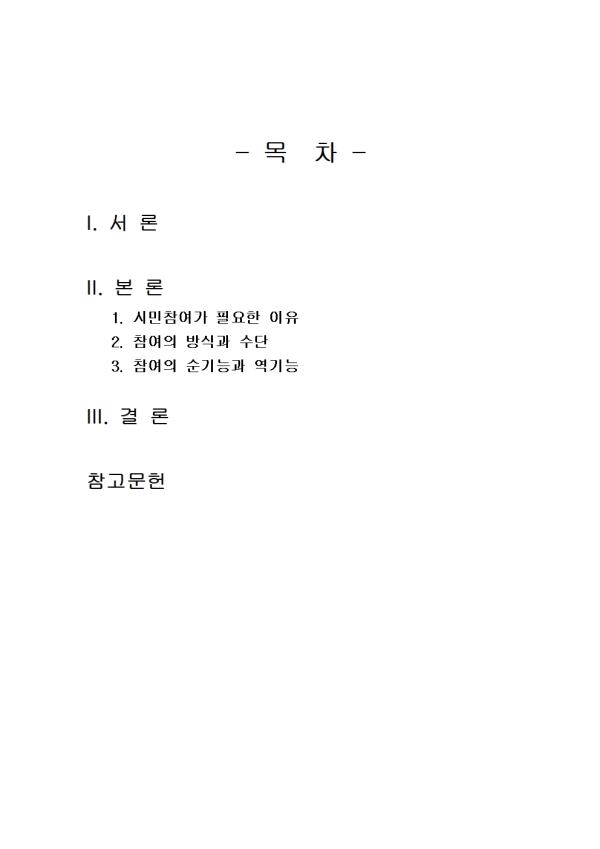 1. ½Ã¹ÎÂü¿©°¡ ÇÊ¿äÇÑ ÀÌÀ¯ 2. Âü¿©ÀÇ ¹æ½Ä°ú ¼ö´Ü 3. Âü¿©ÀÇ ¼ø±â´É°ú ¿ª±â´É - ¸ñ Â÷ - I. ¼ ·Ð II. º» ·Ð 1. ½Ã¹ÎÂü¿©°¡ ÇÊ¿äÇÑ ÀÌÀ¯ 2. Âü¿©ÀÇ ¹æ½Ä°ú ¼ö´Ü 3. Âü¿©ÀÇ ¼ø±â´É°ú ¿ª±â´É III. °á ·Ð Âü°í¹®Çå ** ÇÔ²² Á¦°øµÇ´Â Âü°íÀÚ·á ÇÑ±ÛÆÄÀÏ ** 1. ½Ã¹ÎÂü¿©°¡ ÇÊ¿äÇÑ ÀÌÀ¯.hwp 2. ½Ã¹ÎÂü¿©°¡ ÇÊ¿äÇÑ ÀÌÀ¯2.hwp 3. Âü¿©ÀÇ ¹æ½Ä°ú ¼ö´Ü.hwp 4. Âü¿©ÀÇ ¹æ½Ä°ú ¼ö´Ü2.hwp 5. Âü¿©ÀÇ ¼ø±â´É°ú ¿ª±â´É.hwp 6. Âü¿©ÀÇ ¼ø±â´É°ú ¿ª±â´É2.hwp 7. ¼·Ð ÀÛ¼º½Ã ÂüÁ¶.hwp 8. °á·Ð ÀÛ¼º½Ã ÂüÁ¶.hwp 9. ¼·Ð ÀÛ¼º½Ã ÂüÁ¶2.hwp 10. °á·Ð ÀÛ¼º½Ã ÂüÁ¶2.hwp ¢ºÀÚ·á³»¿ë ¹Ì¸®º¸±â