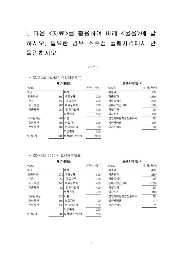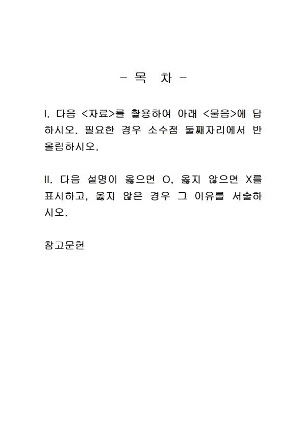 I. ´ÙÀ½ <ÀÚ·á>¸¦ Ȱ¿ëÇÏ¿© ¾Æ·¡ <¹°À½>¿¡ ´äÇϽÿÀ. ÇÊ¿äÇÑ °æ¿ì ¼Ò¼öÁ¡ µÑ°ÀÚ¸®¿¡¼­ ¹Ý¿Ã¸²ÇϽÿÀ.