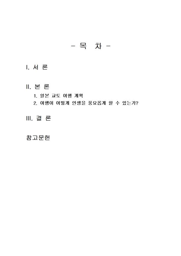 - ¸ñ Â÷ - I. ¼ ·Ð II. º» ·Ð 1. ÀϺ» ±³Åä ¿©Çà °èȹ 2. ¿©ÇàÀÌ ¾î¶»°Ô ÀλýÀ» dz¿ä·Ó°Ô ÇÒ ¼ö Àִ°¡? III. °á ·Ð Âü°í¹®Çå ** ÇÔ²² Á¦°øµÇ´Â Âü°íÀÚ·á ÇÑ±ÛÆÄÀÏ ** 1. 3ÀÏ ÀÏÁ¤ ¿©Çà °èȹ¼.hwp 2. 3ÀÏ ÀÏÁ¤ ¿©Çà °èȹ¼2.hwp 3. 3ÀÏ ÀÏÁ¤ ¿©Çà °èȹ¼3.hwp 4. ÀÌ ¿©ÇàÀÌ ÀλýÀ» dz¿ä·Ó°Ô ÇÏ´Â ÀÌÀ¯.hwp 5. ÀÌ ¿©ÇàÀÌ ÀλýÀ» dz¿ä·Ó°Ô ÇÏ´Â ÀÌÀ¯2.hwp 6. ÀÌ ¿©ÇàÀÌ ÀλýÀ» dz¿ä·Ó°Ô ÇÏ´Â ÀÌÀ¯3.hwp ¢ºÀÚ·á³»¿ë ¹Ì¸®º¸±â