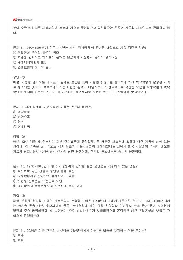 ¹®Á¦ 1. ½Ã¼³¿ø¿¹¿¡¼ ȯ°æÁ¦¾î°¡ °¡´ÉÇÑ °¡Àå ±Ùº»ÀûÀÎ ÀÌÀ¯´Â? ¨ç ½Ã¼³ÀÌ ¿ÜºÎº¸´Ù Ç×»ó µû¶æÇϱ⠶§¹® ¨è ½Ã¼³ ³»ºÎ¿¡ ÀÚ¿¬È¯°æÀÌ ±×´ë·Î ÀçÇöµÇ±â ¶§¹® ¨é ½Ã¼³ÀÌ ¿ÜºÎȯ°æ°ú °Ý¸®µÈ °ø°£À» Á¦°øÇϱ⠶§¹® ¨ê ½Ã¼³ °ñ°ÝÀÌ ¸Å¿ì °ß°íÇϱ⠶§¹® Á¤´ä: ¨é ÇØ¼³: ½Ã¼³Àº °ñ°ÝÀç¿Í ÇǺ¹Àç·Î ÀÌ·ç¾îÁ® ¿ÜºÎȯ°æ°ú °Ý¸®µÈ °ø°£À» Çü¼ºÇϹǷΠ¿Âµµ, ½Àµµ, ±¤, ÀÌ»êÈź¼Ò µîÀÇ È¯°æ¿äÀÎÀ» ÀÎÀ§ÀûÀ¸·Î Á¶ÀýÇÒ ¼ö ÀÖ´Â °ÍÀÌ´Ù. ³ëÁö¿¡¼´Â ¿ÜºÎ ±â»óÁ¶°Ç¿¡ ±×´ë·Î ³ëÃâµÇ¾î ȯ°æÁ¦¾î°¡ »ç½Ç»ó ºÒ°¡´ÉÇÏÁö¸¸, ½Ã¼³ ³»ºÎ´Â ÇǺ¹Àç¿¡ ÀÇÇØ ¿ÜºÎ¿Í Â÷´ÜµÇ¾î °¡¿Â, ȯ±â, Â÷±¤, °ü¼ö µî ´Ù¾çÇÑ È¯°æ°ü¸®°¡ °¡´ÉÇØÁø´Ù. ¹®Á¦ 2. Çѱ¹ÀÇ ½º¸¶Æ® ³ó¾÷ ±â¼ú ¹ßÀü ´Ü°è¿¡¼ 3¼¼´ëÀÇ Æ¯Â¡À¸·Î °¡Àå ÀûÀýÇÑ °ÍÀº? ¨ç ´Ü¼øÈ¯°æÁ¦¾î Áß½ÉÀÇ ±âÃÊÀû ÀÚµ¿È ´Ü°è ¨è ºÎºÐÀû ÀÚµ¿È°¡ Àû¿ëµÈ ÃÊ±â ´Ü°è ¨é ·Îº¿È ¹× ¿¡³ÊÁö ÃÖÀûȰ¡ µµÀÔµÈ °íµµÈ ´Ü°è ¨ê º¹ÇÕȯ°æÁ¦¾î¿Í ÀΰøÁö´ÉÀÌ Ã³À½ Àû¿ëµÈ ´Ü°è Á¤´ä: ¨é ÇØ¼³: Çѱ¹ÀÇ ½º¸¶Æ® ³ó¾÷ ±â¼úÀº 1¼¼´ëÀÎ ´Ü¼øÈ¯°æÁ¦¾î¿Í ÀÚµ¿È ´Ü°è, 2¼¼´ëÀÎ º¹ÇÕȯ°æÁ¦¾î ¹× ÀΰøÁö´É Àû¿ë ´Ü°è, 3¼¼´ëÀÎ ·Îº¿È ¹× ¿¡³ÊÁö ÃÖÀûÈ ´Ü°è·Î ¹ßÀüÇϰí ÀÖ´Ù. 3¼¼´ë´Â ³ó¾÷ 4.0°ú 5.0 ½Ã´ë·Î ÁøÀÔÇÏ¸é¼ ±âÁ¸ÀÇ È¯°æÁ¦¾î¸¦ ³Ñ¾î ¹«ÀÎÈ, ÀÚÀ²ÁÖÇà, ¿¡³ÊÁö ÀÚ±Þ µîÀÌ ÅëÇÕµÈ ÇüÅ·Π¹ßÀüÇÏ´Â °ÍÀÌ Æ¯Â¡ÀÌ´Ù. - Áß·« - |