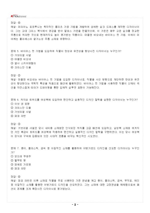 ¹®Á¦ 1. ÆÐ¼Ç µðÀÚÀÎÀÇ ÇÙ½É ¿ä¼Ò Áß ½ºÅ¸Àϰú »öÀ» ±¸ÇöÇÏ´Â ±â¹ÝÀÌÀÚ Ãâ¹ßÁ¡ÀÌ µÇ´Â ¿ä¼Ò´Â ¹«¾ùÀΰ¡? ¨ç ½Ç·ç¿§ ¨è »ö ¨é ÅØ½ºÅ¸ÀÏ ¨ê µðÅ×ÀÏ Á¤´ä: ¨é ÇØ¼³: ÆÐ¼Ç µðÀÚÀο¡¼ ½ºÅ¸ÀÏ, ÅØ½ºÅ¸ÀÏ, »öÀº ÇÙ½É ¿ä¼Ò·Î ²ÅÈ÷¸ç, ÀÌ Áß ÅØ½ºÅ¸ÀÏÀº ½ºÅ¸Àϰú »öÀ» ±¸ÇöÇÏ´Â ±â¹ÝÀÌÀÚ Ãâ¹ßÁ¡ÀÌ µÇ´Â ¿ä¼ÒÀÌ´Ù. ¼¶À¯ Á¾·ù, Áú°¨, Á¶Á÷, °¡°ø ¹æ¹ý µî¿¡ µû¸¥ ¼ÒÀç Æ¯¼º¿¡ ÀÇÇØ µðÀÚÀÎÀÇ ¿Ï¼ºµµ°¡ Å©°Ô ´Þ¶óÁö±â ¶§¹®¿¡, ÅØ½ºÅ¸ÀÏ¿¡ ´ëÇÑ ±íÀº ÀÌÇØ´Â ÆÐ¼Ç µðÀÚÀÎÀÇ º»ÁúÀûÀÎ ¿ª·®ÀÌ´Ù. ¹®Á¦ 2. ÅØ½ºÅ¸ÀÏÀÇ ±â´É¼º¿¡ ÇØ´çÇϴ Ư¼ºÀ¸·Î ¿Ã¹Ù¸£°Ô ¦Áö¾îÁø °ÍÀº? ¨ç ±¤ÅÃ, ¹«´Ì, Å ¨è °µµ, Èí¼ö¼º, ¹æ¼ö¼º ¨é »ö»ó, ¹«´Ì, Ã˰¨ ¨ê ½Ç·ç¿§, µå·¹ÀÌÇÁ¼º, Åõ¸í°¨ Á¤´ä: ¨è ÇØ¼³: ÅØ½ºÅ¸ÀÏÀÇ ±â´É¼ºÀº ÄèÀû¼º, ³»±¸¼º, °ü¸®ÆíÀ̼º°ú °°Àº ¿Ê°¨ÀÇ ½ÇÁúÀû ¼º´ÉÀ» ÀǹÌÇϸç, °µµ, À¯¿¬¼º, Èí¼ö¼º, ¼Ó°Ç¼º, Åõ½À¼º, ¹æ¼ö¼º, ¼¼Å¹¼º, ¹æ¿À¼º µîÀÌ ÁÖ¿ä ¼±Åà ±âÁØÀÌ µÈ´Ù. ±¤ÅÃ, »ö»ó, ¹«´Ì, Å µîÀº ±â´É¼ºÀÌ ¾Æ´Ï¶ó ÅØ½ºÅ¸ÀÏÀÇ ½É¹Ì¼º¿¡ ÇØ´çÇÏ´Â ¿ä¼ÒµéÀÌ´Ù. - Áß·« - |